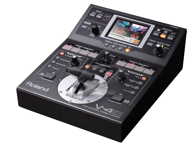 Mindent-az-egyben videókeverő, HDMI be- és kijáratokkal, USB stream kimenettel és beépített, 320x240 pixel felbontású, érintésérzkeny előnézeti monitorral. A V-4EX - a legendás V-4 és V-8 nyomdokain járva - immár HDMI csatlakozókkal is fel lett vértezve, mely progresszív belső jelfeldolgozással, audio beágyazással és HDCP támogatással rendelkezik. Immár audio keverő is helyet kapott a készülékben, ami késleltetéssel (max. 4 képkocka) is rendelkezik. Az USB stream kimenetnek köszönhetően egy PC beiktatásával az esemény videó anyaga közvetlenül továbbítható az internetre. A negyedik bemet és a kimenet scaler funkcióval rendelkezik. Összesen 259 áttűnést és 148 effektet lehet használni a képfeldolgozás során.